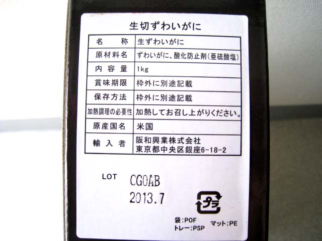 | 生ズワイポーション | : | 1.0kg |
